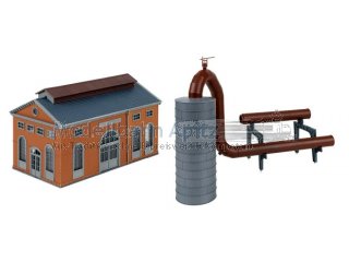 Dieses Miniaturmodell eines Backsteingebäudes mit Hochtank und ausgearbeiteten Rohrleitungen bildet in der Realität ein zentrales Element der Gichtgasreinigung in Hüttenwerken. Die industrielle Szenerie lässt sich mit dem separat erhältlichen Rohrleitungs-Set (Art. 180328) noch weiter ausbauen – für ein realistisches Gesamtbild im Hüttenwerksbetrieb. Das Modell ist abgestimmt auf das Modell des Meidericher Hochofens.