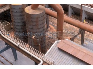 Dieses Miniaturmodell eines Backsteingebäudes mit Hochtank und ausgearbeiteten Rohrleitungen bildet in der Realität ein zentrales Element der Gichtgasreinigung in Hüttenwerken. Die industrielle Szenerie lässt sich mit dem separat erhältlichen Rohrleitungs-Set (Art. 180328) noch weiter ausbauen – für ein realistisches Gesamtbild im Hüttenwerksbetrieb. Das Modell ist abgestimmt auf das Modell des Meidericher Hochofens.