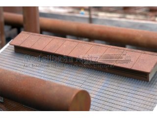Dieses Miniaturmodell eines Backsteingebäudes mit Hochtank und ausgearbeiteten Rohrleitungen bildet in der Realität ein zentrales Element der Gichtgasreinigung in Hüttenwerken. Die industrielle Szenerie lässt sich mit dem separat erhältlichen Rohrleitungs-Set (Art. 180328) noch weiter ausbauen – für ein realistisches Gesamtbild im Hüttenwerksbetrieb. Das Modell ist abgestimmt auf das Modell des Meidericher Hochofens.