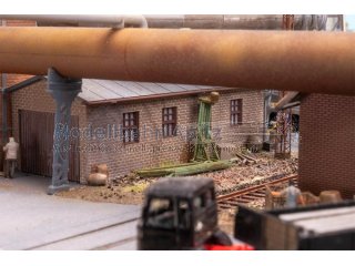 Mit dieser detailreich gestalteten Gebläsehalle samt Rohrleitungen hält Industrieatmosphäre Einzug auf der Modellbauanlage – perfekt abgestimmt auf das Hochofenmodell. Mit gewaltigen Gebläsen wurde hier der sogenannte Hochofenwind erzeugt – die heiße Luft, die für den Schmelzprozess im Hochofen unverzichtbar war. Durch ein verzweigtes Netz aus Windleitungen strömte die Luft weiter zu den Winderhitzern, wo sie auf hohe Temperaturen gebracht wurde. Ideal kombinierbar mit dem Rohrleitungs-Set (Art. 180327), um den industriellen Charakter noch authentischer darzustellen.