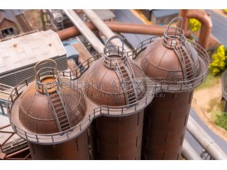 Dieses Miniaturmodell stellt drei Winderhitzer dar, die im Hüttenwerk eine zentrale Rolle spielen: Sie sorgen dafür, dass glühend heiße Luft durch die Heißwindringleitungen in den Hochofen strömt und das Eisenoxid in flüssiges Roheisen verwandelt werden kann. Das Modell ist präzise auf den Meidericher Hochofen abgestimmt und erweitert ihn um ein weiteres faszinierendes technisches Detail.