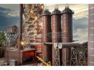 Das Modell umfasst den Hochofen mit umlaufendem Gestell, den Schrägaufzug samt Windenhaus, einen Staubsammler, das Hosenrohr mit zugehörigen Leitungen, eine Gasfackel, die Gießhalle mit Portalkran sowie einen kleinen Tagesbunker.