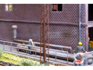 Wasseraufbereitung im Industriestil! Ideal für jede realistisch gestaltete Industrieanlage. Die Anlage zur Wasseraufbereitung ergänzt Hochofen und andere Industriegebäude auf stimmige Weise. Mit dem Rohrleitungs-Set (Art. 180331) flexibel erweiterbar – für noch mehr Authentizität im Miniaturmaßstab.
