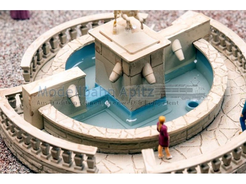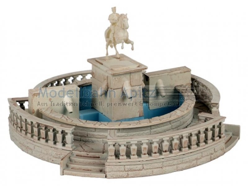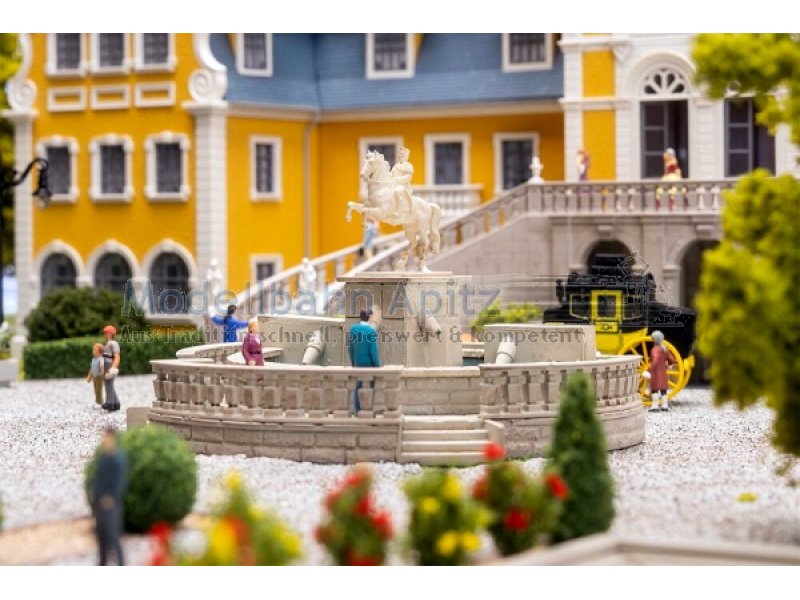 Bezaubernder Schlossbrunnen im historischen Stil, gekrönt von einem Reiter auf steigendem Ross, der an vergangene Zeiten erinnert. Er setzt liebevolle Akzente und verschönert jeden Schlossgarten oder Park auf elegante Weise. Der Brunnen lässt sich problemlos mit der Wasserpumpe (Art. 180627 - liegt nicht bei) betreiben und wird so zum lebendigen Mittelpunkt der Gartenanlage.