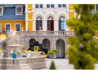 Dieses schöne Schlossmodell beeindruckt mit majestätischer Freitreppe, kunstvollen Verzierungen, markantem Turm und einer eleganten gelben Fassade. Inspiriert von barocken Residenzen des 17. und 18. Jahrhunderts verkörpert es die ganze Schönheit und Macht dieser Epoche. Die Barockzeit war geprägt von Macht und der kunstvollen Inszenierung von Gefühlen. Schlösser wie Versailles oder Ludwigsburg verkörpern bis heute diese Werte. Strenge Symmetrie, prachtvolle Architektur und überwältigende Raumwirkungen bestimmten das Bild jener Zeit. Dieses Modell greift diesen Geist auf und bringt ein Stück königlicher Baukunst auf die Modellanlage.