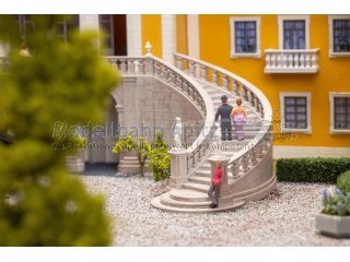 Dieses schöne Schlossmodell beeindruckt mit majestätischer Freitreppe, kunstvollen Verzierungen, markantem Turm und einer eleganten gelben Fassade. Inspiriert von barocken Residenzen des 17. und 18. Jahrhunderts verkörpert es die ganze Schönheit und Macht dieser Epoche. Die Barockzeit war geprägt von Macht und der kunstvollen Inszenierung von Gefühlen. Schlösser wie Versailles oder Ludwigsburg verkörpern bis heute diese Werte. Strenge Symmetrie, prachtvolle Architektur und überwältigende Raumwirkungen bestimmten das Bild jener Zeit. Dieses Modell greift diesen Geist auf und bringt ein Stück königlicher Baukunst auf die Modellanlage.
