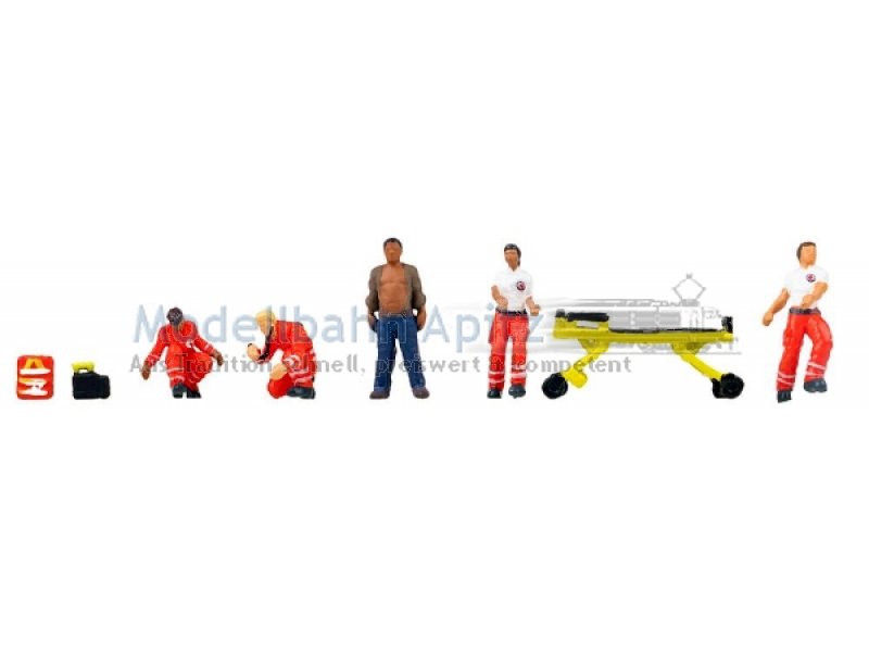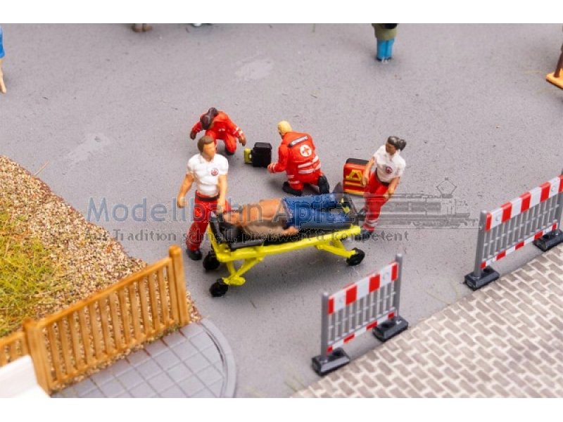 Einsatz unter Zeitdruck! Mit Trage, Erste-Hilfe-Ausrüstung und großer Einsatzbereitschaft erreichen fünf Rettungssanitäter den Unfallort, sichern die Situation und kümmern sich um die Versorgung der Verletzten. Ob Verkehrsunfall, Baustellenunglück oder Rettung in letzter Minute – dieses Figurenset schafft realistische Einsatzmomente und verleiht jeder Stadtlandschaft mehr Leben und Dynamik.