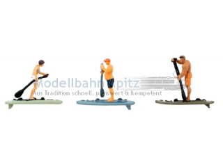 Sonne, Wasser und Gleichgewicht! Drei sportliche Figuren genießen das Stand-Up-Paddeln auf ruhiger See. Mit konzentriertem Blick und festem Stand gleiten sie über die Wasseroberfläche – jeder auf seinem Board, bereit für das nächste Abenteuer. Ob am See, am Meer oder auf dem Fluss – dieses Set bringt sommerliche Leichtigkeit und sportliche Aktivität in jede Wasserszene!