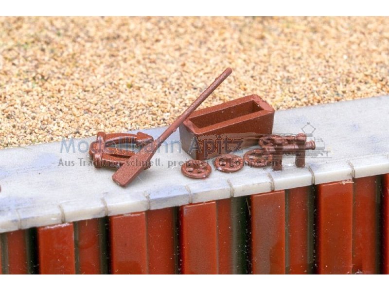 Kleine Details für Häfen und Schiffe: Zwei Paddel, ein Anker, 12 Holzklampen und vieles mehr, um dem Modellbau-Hafen Leben einzuhauchen!