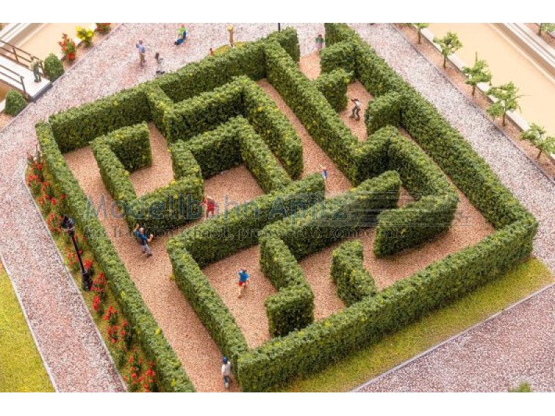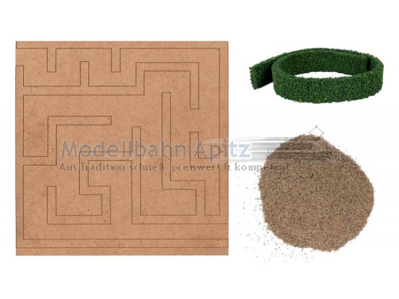Ein verwunschenes Heckenlabyrinth für prunkvolle Schlossgärten, historische Parks oder fantasievolle Szenen. Die dunkelgrünen Hecken winden sich durch verschlungene Pfade und laden die Miniaturbewohner zum Verirren ein. Inklusive passendem Streumaterial zur Bodengestaltung für ein stimmiges Gesamtbild.