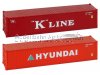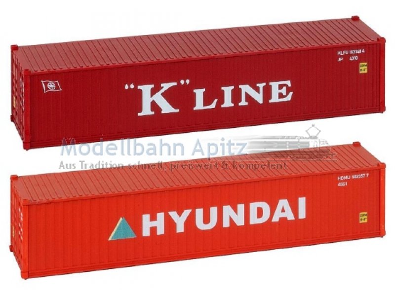 Ein dunkelroter K-Line-Container und ein orangeroter HYUNDAI-Container bringen internationales Frachtflair in die Modellwelt. Ideal, um Industrieanlagen, Hafenszenen oder Güterwaggons authentisch zu gestalten – passend für Märklin-Waggons und perfekt für detailverliebte Szenenbauer.