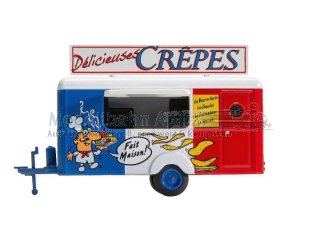 Da läuft nicht nur den Miniaturbesuchern das Wasser im Mund zusammen! Der charmante Crêpes-Verkaufswagen in klassisch französischen Farben und mit freundlichem Aufdruck belebt jede Miniatur-Innenstadt und zieht alle Blicke auf sich. Ein liebevolles Detail, das Atmosphäre schafft.