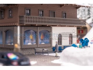 Ob Skier, Snowboards oder Zubehör – dieses Modell vermittelt die Atmosphäre eines lebendigen Touristenortes und ergänzt hervorragend Bergdörfer und Wintersportanlagen auf der Modellbahnanlage.