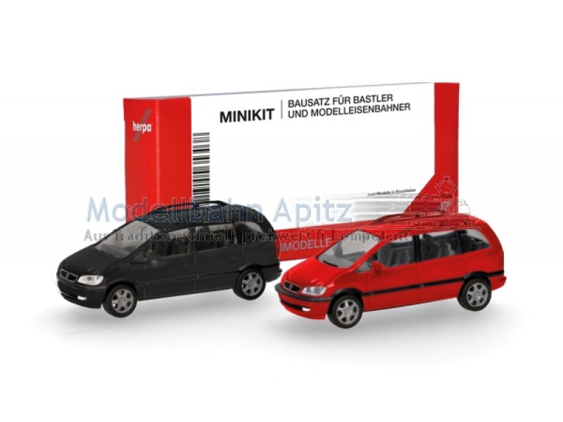 In den neuen Farben schwarz und rot setzt Herpa auch den klassischen Opel Zafira als MiniKit Bausatz für das Sortiment um. |