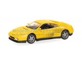 Der Ferrari 348 tb ist mittlerweile zum Klassiker geworden und erscheint nun wieder bei Herpa mit zu öffnender Motorhaube in der Farbgebung giallo fly. |