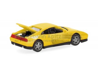 Der Ferrari 348 tb ist mittlerweile zum Klassiker geworden und erscheint nun wieder bei Herpa mit zu öffnender Motorhaube in der Farbgebung giallo fly.