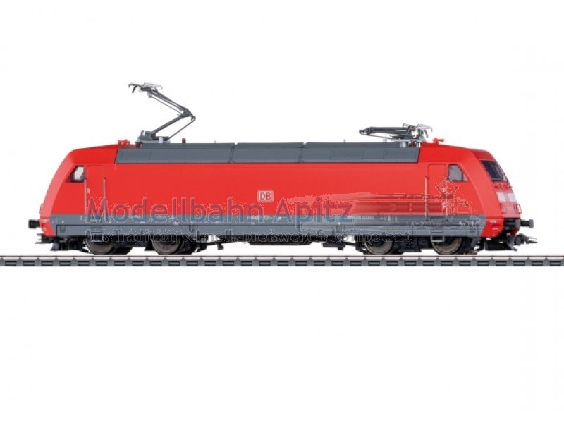 Vorbild: Schnellzuglokomotive Baureihe 101 der Deutschen Bahn AG (DB AG). Farbgebung in Verkehrsrot, als Zuglokomotive für die ICE-Schnellzugwagen der ehemaligen Metropolitan-Reisezugwagen (MET). Lok-Betriebsnummer 101 131-1. Betriebszustand um 2015. Modell: Mit Digital-Decoder mfx+ und umfangreichen Geräuschfunktionen. Geregelter Hochleistungsantrieb mit Schwungmasse, zentral eingebaut. 4 Achsen über Kardan angetrieben. Haftreifen. Fahrtrichtungsabhängig wechselndes Dreilicht-Spitzensignal und 2 rote Schlusslichter konventionell in Betrieb, digital schaltbar. Fernscheinwerfer und Führerstandbeleuchtung separat digital schaltbar. Spitzenlicht an Lokseite 2 und 1 jeweils separat digital abschaltbar. Doppel-A-Lichtfunktion. Beleuchtung mit wartungsfreien warmweißen und roten Leuchtdioden (LED). An Lokseite 2 ist eine 2-polige Kupplung im Normschacht eingesteckt, als elektrische Verbindung zum Schnellzugwagen 1 aus ICE-Schnellzugwagen-Set 42930. An Lokseite 1 ist ein normaler Kurzkupplungskopf im Normschacht eingesteckt. Länge über Puffer 21,9 cm.
