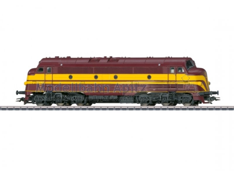 Vorbild: Diesellokomotive Serie 1600 der Luxemburgischen Staatsbahnen (CFL). NOHAB-Mehrzweckmaschine in weinroter Farbgebung der Epoche III. Modell: Mit Digital-Decoder mfx+ und umfangreichen Geräuschfunktionen. Geregelter Hochleistungsantrieb zentral eingebaut. 4 Achsen über Kardan angetrieben. Haftreifen. Fahrtrichtungsabhängig wechselndes Zweilicht-Spitzensignal und zwei rote Schlusslichter konventionell in Betrieb, digital schaltbar. Spitzensignal an Lokseite 2 und 1 jeweils digital separat schaltbar. Führerstandbeleuchtung digital separat schaltbar, mit der Fahrtrichtung wechselnd. Rangiergang mit Rangierlicht schaltbar. Beleuchtung mit wartungsfreien warmweißen und roten Leuchtdioden (LED). Mit Pufferspeicher. Angesetzte Griffstangen aus Metall. Führerstände mit Relief-Inneneinrichtung. Länge über Puffer 21,7 cm.