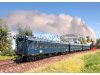 Vorbild: Drei Schnellzugwagen der Einheitsbauart 1928 bis 1930 (Verwendungsgruppe 29) der Deutschen Bundesbahn (DB). Drei Schnellzugwagen AB4ü-28, 1./2. Klasse. Zuglauf: Hannover - Hamm (W) – Wuppertal – Köln als F-Zug F 14 äDom-Pfeil“. Stahlblaue Grundfarbgebung. Betriebszustand 1952. Modell: Detaillierte Ausführung in vollem Längenmaßstab. Alle Wagen mit serienmäßig eingebauter LED-Innenbeleuchtung mit warmweißen Leuchtdioden (LED) und Pufferkondensator. Ein Wagen serienmäßig an einem Ende mit Zugschlussbeleuchtung ausgestattet. Der an diesem Wagen befindliche Schleifer für die Stromaufnahme versorgt über die serienmäßig eingebauten stromführenden Kurzkupplungköpfe den ganzen Wagenverband mit Strom. Dazu ist eine fest definierte Fahrzeugreihenfolge vorgegeben. An beiden Enden des Wagenverbandes sind die normalen neuen Kurzkupplungsköpfe für niedrigere Pufferhöhen eingesetzt. Reisezugwagen mit mehrfarbiger Inneneinrichtung. Drehgestelle der Bauart Görlitz II schwer. Stirnseitig separat angesetzte Aufstiegsleitern und angesetzte Griffstangen. Befahrbarer Mindestradius 360 mm. Gesamtlänge über Puffer ca. 75,5 cm.