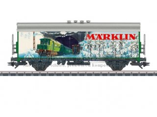 Vorbild: Privater Kühlwagen Ibopqs mit dem Titelbild des Märklin-Katalogs aus dem Jahre 1937. Modell: Eingesetzte Dachlüfter sowie angesetzte Aufstiege an den Stirnseiten. Länge über Puffer 13,4 cm.Gleichstromradsatz E32376004.Trix-Express-Radsatz E36660700.