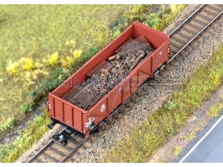 Vorbild: Offener Hochbordwagen der Bauart Omm 37 der Deutschen Bundesbahn (DB). Rotbraune Grundfarbgebung. Betriebszustand ab Mitte der 1950er-Jahre.