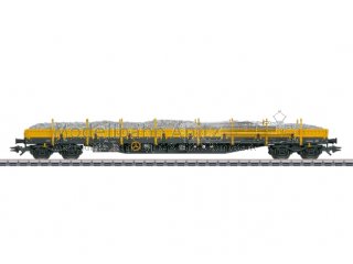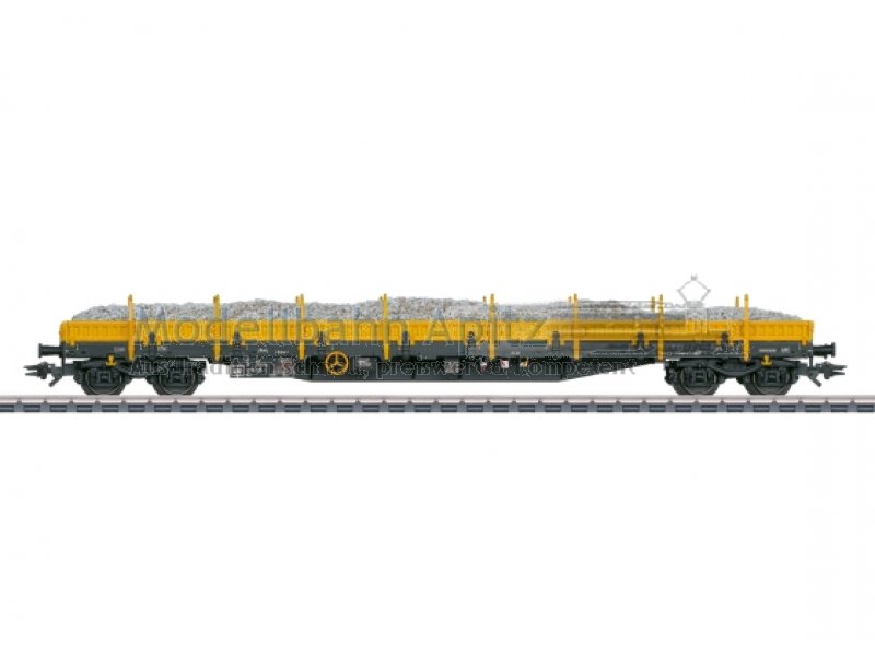 Vorbild: Vierachsiger Niederbordwagen der Bauart Res der On Rail GmbH, Mettmann. Europäische Standardbauart mit 19,90 m Länge. Ausführung mit Stahl-Bordwänden, klappbaren Rungen und eckigen Puffern. Goldgelbe Grundfarbgebung. Betriebszustand ab 2007. Modell: Spezifische Ausführung des Unterbodens. Viele angesetzte Einzelheiten wie klappbare Rungen und Handräder für Feststellbremse. Drehgestelle Typ Y 25. Wagen mit einer Schotter-Nachbildung beladen. Länge über Puffer 22,9 cm. Gleichstromradsatz E700580.