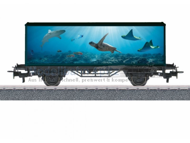 Vorbild: Zweiachsiger Containerwagen in einer attraktiven Meeresgestaltung. Modell: Zweiachsiger Containerwagen mit Relex-Kupplungen. Wagenlänge 11,5 cm.Gleichstromradsatz E700580 separat erhältlich.