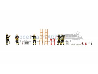 Inhalt: 5 Figuren Feuerwehr, 1 Flutlicht, 1 Hydroaggregat, 2 Leitern, 2 Schläuche, 1 Schere, 1 Spreizer, 1 Löscher, 2 Hydranten, 1 Strahlrohr, 1 Rohr