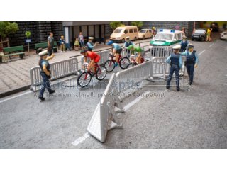 Inhalt: 3 Rennradfahrer, 3 Polizisten, 8 Absperrungen