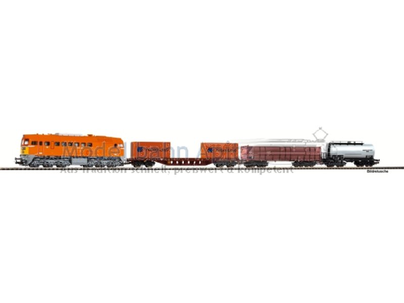 Neuheit 2026: Güterzug Start-Set mit Diesellokomotive auf A-Gleis für H0 Modelleisenbahn Epoche V Komplettes H0 Start-Set für die Modelleisenbahn mit Güterzug der M?V: Kraftvolle Diesellok BR M62, zwei Güterwagen und ein Kesselwagen. Inklusive PIKO A-Gleis mit Bettung - ideal für den einfachen Einstieg ins Hobby ModellbahnH0 Start-Set mit Diesellok, Güterwagen und Kesselwagen | Vorbildgetreuer Güterzug der ungarischen Staatsbahn (M?V), Epoche V | Inkl. PIKO A-Gleis mit Bettung | Einfacher Auf- und Abbau | Stabile Gleislage durch hochwertige Gleisbettung | Grundfläche ca. 158 x 88 cm, minimale Aufbaufläche 168 x 98 cmSet-Inhalt:1 x MAV Güterzug (Diesellok M62 + 2 Güterwagen + 1 Kesselwagen)12 x 55412 Bogen mit Bettung R2 422 mm5 x 55401 Gerade Gleise mit Bettung 231 mm1 x 55406 Gerades Gleis für Anschluss-Clip1 x 55447 Sockel für Anschluss-Clip1 x 55270 Anschluss-Clip1 x 55499 H0 Aufgleister1 x Fahrregler1 x Netzteil (Adapter 5,4 VA)