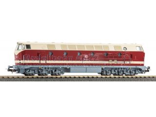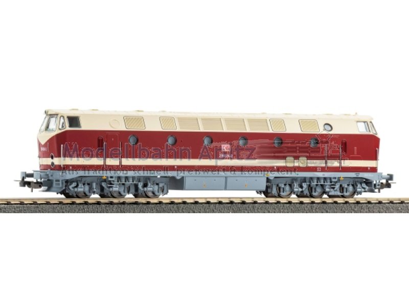 Neuheit 2026: Diesellok BR 219 mit vorbildgetreuer Lackierung und Bedruckung der DB AG in Epoche V mit Spitzenlicht oben. Dank des kräftigen, mit präzise ausgewuchteten Schwungmassen versehenen Motors überzeugt das PIKO Modell der 219 mit ausgeglichener Laufkultur und beachtlicher Zugkraft. Die Form- und Farbgestaltung der wegen ihrer Bullaugen U-Boot genannten Lok steht ihrer feinmechanischen Präzision nicht nach. Das Modell verfügt ab Werk über einen PSD XP Decoder mit Sound und vielfältigen Funktionen.