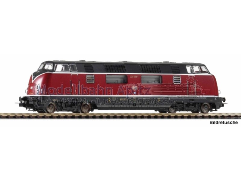 Neuheit 2026: Druckvariante der BR 220 der Deutschen Bundesbahn in Epoche IV. Das Modell verfügt ab Werk über einen PIKO XP Sound-Decoder mit passendem Lautsprecher.