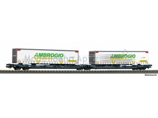 Neuheit 2026: Taschenwagen T3000e der Wascosa mit 2 Trailern im Design Ambrogio für H0 Modelleisenbahn Epoche VIDer Taschenwagen T3000e der Wascosa zählt zu den modernsten Wagen für den kombinierten Ladungsverkehr in Europa. Das PIKO Modell in Epoche VI gibt diesen zeitgemäßen Güterwagen vorbildgerecht wieder und ist mit zwei originalgetreu gestalteten Aufliegern des italienischen Güterverkehrsunternehmens Ambrogio beladen. Dank sauberer Lackierung, präziser Bedruckung und sehr guter Rolleigenschaften eignet sich der Wagen ideal für realistische Ganz- und Mischzüge auf der H0-Modelleisenbahn.Taschenwagen T3000e der Wascosa in Epoche VI | Beladen mit zwei Ambrogio-Aufliegern | Hochwertiges H0-Modell für die Modelleisenbahn | Vorbildgerechte Lackierung und scharfe Bedruckung | Hervorragende Rolleigenschaften für sicheren Betrieb