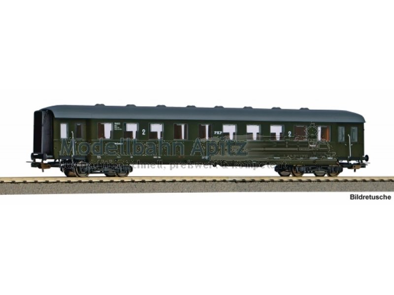 Neuheit 2026: Nachbildung des 3. Klasse Eilzugwagens Schürzeneilzugwagen der Polnischen Staatsbahnen PKP, Epoche III. Mit unterschiedlicher Wagennummer gegenüber 53288. Modell mit Inneneinrichtung, Kupplungsaufnahme nach NEM 362 und KK-Kinematik. Für Innenbeleuchtung vorgesehen.