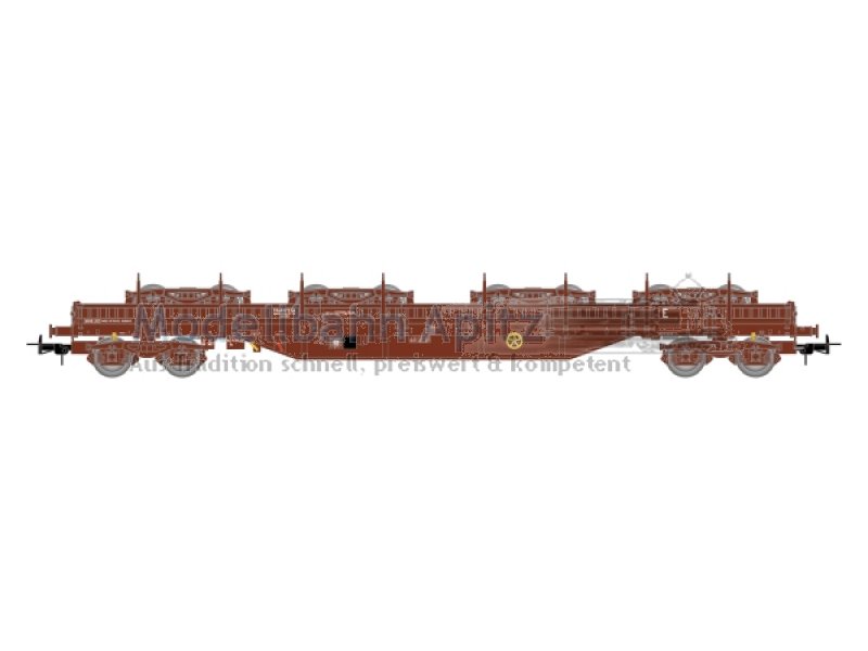 TRANSFESA, 4-achs. Rungenwagen Res, beladen mit 4 x Y25-Drehgestellen, braune Farbgebung
