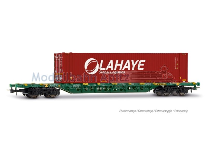 CEMAT, Containerwagen der Bauart Sgnss, grün, mit 45´-Container äLAHAYEö