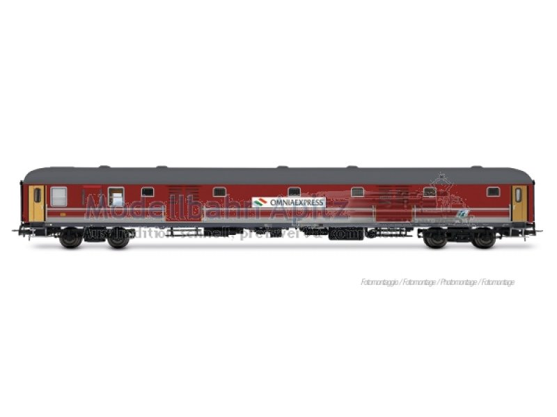 FS, Gepäckwagen UIC-X 1970 ohne Schürzen, rot-graue Farbgebung, äOmnia Expressö