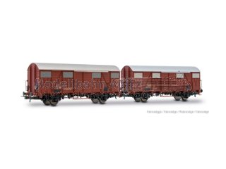 FS, 2-tlg. Set gedeckter Güterwagen der Bauart Ghs, braune Farbgebung, einer mit Zugschlusslaternen
