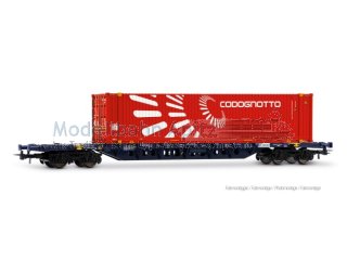Mercitalia Intermodal, 4-achs. Containerwagen der Bauart Sgnss, blau Farbgebung, mit 45´-Container äCodognottoö