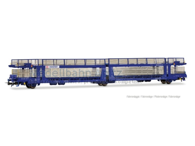 Transfesa, 3-achs. Autotransportwagen, Bauart Laeks 63C äHispanautoö, blaue Farbgebung