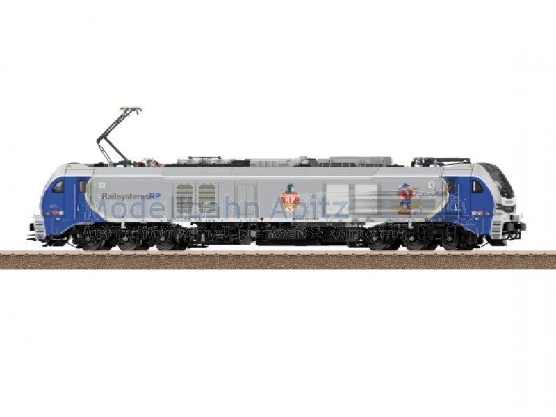 Vorbild: Zweikraftlokomotive Baureihe 2159 (Stadler Eurodual) der European Loc Pool AG (ELP), vermietet an die Railsystems RP. Silber/Blaue Grundfarbgebung. Betriebsnummer 2159 234-4. Betriebszustand ab 2023. Modell: Mit Digital-Decoder und umfangreichen Geräuschfunktionen. Geregelter Hochleistungsantrieb mit Schwungmasse, zentral eingebaut. Jeweils zwei Achsen in jedem Drehgestell über Kardan angetrieben. Haftreifen. Fahrtrichtungsabhängig wechselndes Dreilicht-Spitzensignal und zwei rote Schlusslichter konventionell in Betrieb, digital schaltbar. Fernlicht schaltbar. Spitzensignal an Lokseite 2 und 1 jeweils digital separat abschaltbar. Doppel-A-Licht-Funktion. Führerstandsbeleuchtung mit der Fahrtrichtung wechselnd und Maschinenraumbeleuchtung digital schaltbar. Zusätzlich kann eine Kupplungsraumbeleuchtung fahrtrichtungsabhängig digital geschaltet werden. Beleuchtung mit wartungsfreien warmweißen und roten Leuchtdioden (LED). Mit Pufferspeicher. Viele separat angesetzte Teile wie Griffstangen, Sandkästen, UIC-Steckdosen und Dachleitungen. Detailliert ausgeführte Dachaufbauten mit zwei neu konstruierten Stromabnehmern. Stromabnehmer digital heb- und senkbar. Lüfterräder auf dem Dach angetrieben und digital schaltbar. Pufferhöhe nach NEM. Bremsleitungen, Schraubenkupplungen und geschlossene Schienenräumer liegen als separat ansteckbare Teile bei. Länge über Puffer 26,4 cm.