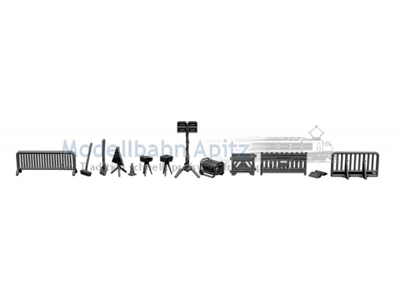 3D-Kit “Einsatz-Zubehörö , Inhalt: 3 Hamburger Gitter, 3 leichte Absperrgitter, 1 Strom-Aggregat, 1 Flutlichtstrahler, 1 Verkehrsschild, 2 Blitzer, 1… |