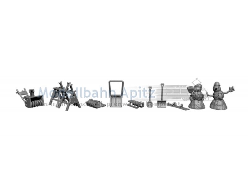 3D-Kit “Im Winterö , Inhalt: 2 Schneemänner, 2 Schneefräsen, 5 Schlitten, 9 Schneeschaufeln, 3 Snowboards, 1 Ski-Ständer |