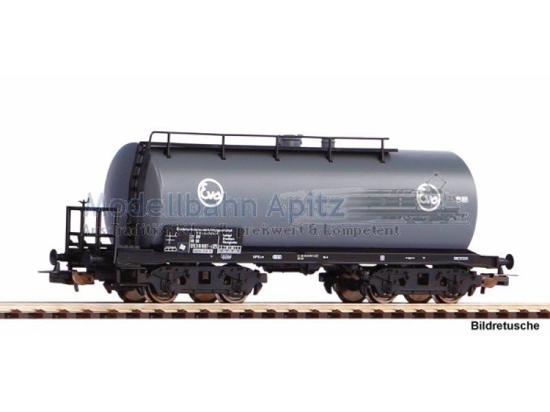 Neuheit 2026: Vierachsiger Kesselwagen der DB in Epoche III mit EVA-Design. Das Wagenmodell überzeugt durch eine vorbildgerechte Lackierung und Bedruckung sowie hervorragende Rolleigenschaften.