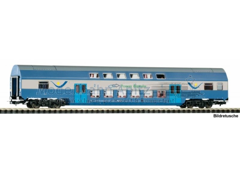 Neuheit 2026: Doppelstock-Personenwagen in der Lackierung der Polregio (PR) für H0 Modelleisenbahn Epoche VIDie Doppelstock-Personenwagen von Polregio prägen bis heute den modernen Regionalverkehr in Polen. Mit diesem Modell setzt PIKO einen typischen Vertreter der Epoche VI detailgetreu in Spur H0 um. Feinste Lackierung und trennscharfe Bedruckung, schlierenfreie Fenster sowie angesetzte Griffstangen sorgen für ein authentisches Erscheinungsbild. Die stimmige Inneneinrichtung, scharf gravierte Drehgestelle und ausgezeichnete Rolleigenschaften machen den Wagen zur idealen Ergänzung moderner Regionalzugkompositionen. Das Modell ist zudem für die einfache Nachrüstung einer Innenbeleuchtung vorbereitet.Hochwertiges H0-Modell für die Modelleisenbahn | Vorbildgerechte Polregio-Lackierung der Epoche VI | Konturenscharfe Bedruckung und schlierenfreie Fenster | Detaillierte Inneneinrichtung und fein gravierte Drehgestelle | Hervorragende Rolleigenschaften für sicheren Lauf | Vorbereitung zur einfachen Nachrüstung einer Innenbeleuchtung