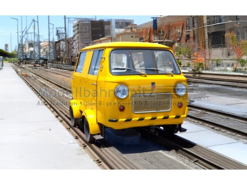 FS, Draisine Fiat 500 mit rechteckigem Kühlergrill, gelbe Farbgebung, mit Multiprotokoll-Digitaldecoder