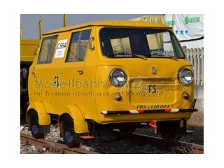 FS, Draisine Fiat 500 ohne Kühlergrill, gelb, mit abgerundetem FS-Logo, historische Ausführung, mit DCC Sounddecoder