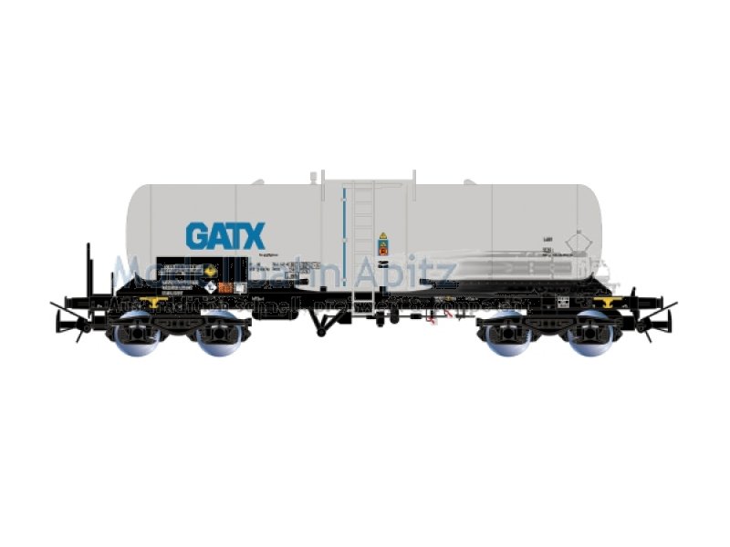 GATX, 4-achs. Kesselwagen, Aufstiegsleitern an der Seite des Kessels, silberne Farbgebung