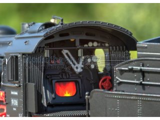 Modell: Mit Digital-Decoder und umfangreichen Geräuschfunktionen. Geregelter Hochleistungsantrieb mit Schwungmasse im Kessel. 4 Achsen angetrieben. Haftreifen. Lokomotive und Tender weitgehend aus Metall. Serienmäßig eingebauter Raucheinsatz, mit geschwindigkeitsabhängigem, dynamischem Rauchausstoß. Fahrtrichtungsabhängig wechselndes Zweilicht-Spitzensignal konventionell in Betrieb, digital schaltbar. Führerstandbeleuchtung und Feuerbüchsenflackern jeweils separat digital schaltbar. Beleuchtung mit wartungsfreien warmweißen und roten Leuchtdioden (LED). Mit Pufferspeicher. Schwenkbare Führerstandtüren und Imitation der Vorhänge zwischen Führerstand und Tender. Kurzkupplung mit Kinematik zwischen Lok und Tender. Am Tender kinematikgeführte Kurzkupplung mit NEM-Schacht. Pufferhöhe an Lok und Tender nach NEM. Befahrbarer Mindestradius R2 437,5 mm. Kolbenstangenschutzrohre und Bremsschläuche liegen bei. Länge über Puffer 26,0 cm.