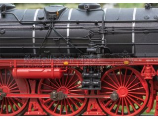 Modell: Mit Digital-Decoder und umfangreichen Geräuschfunktionen. Geregelter Hochleistungsantrieb mit Schwungmasse im Kessel. Eine Achsen angetrieben, drei Achsen über Kuppelstange angetrieben. Haftreifen. Lokomotive und Tender weitgehend aus Metall. Serienmäßig eingebauter Rauchgenerator mit geschwindigkeitsabhängigem, dynamischem Rauchausstoß. Fahrtrichtungsabhängig wechselndes Zweilicht-Spitzensignal konventionell in Betrieb, digital schaltbar. Führerstandbeleuchtung, Feuerbüchsenflackern und Fahrwerkbeleuchtung separat digital schaltbar. Beleuchtung mit wartungsfreien warmweißen und roten Leuchtdioden (LED). Mit Pufferspeicher. Kurzkupplung mit Kinematik zwischen Lok und Tender. Am Tender kinematikgeführte Kurzkupplung mit NEM-Schacht. Pufferhöhe an Lok und Tender nach NEM. Befahrbarer Mindestradius 437,5 mm. Mit leichten Einschränkungen in Radius 1 fahrfähig. Kolbenstangenschutzrohre und Bremsschläuche liegen bei. Länge über Puffer ca. 31 cm.